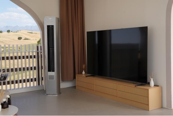 智慧客厅场景:智能空调专利技术能够识别人体位置,实现“风随人动”的智慧送风体验,同时自动调节室内温湿度平衡。